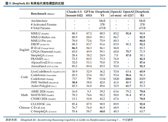 具体而言,能力方面,中信证券指出,DeepSeek-R1的推理能力对标OpenAI o1。“参考DeepSeek官方发布的论文,DeepSeek-R1作为开源强化学习大模型,在数学、编程、复杂问题解决等领域体现强大推理能力。”