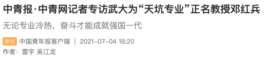 记者注意到,早在2021年,邓红兵教授曾因为“天坑专业”正名,而在网络走红。